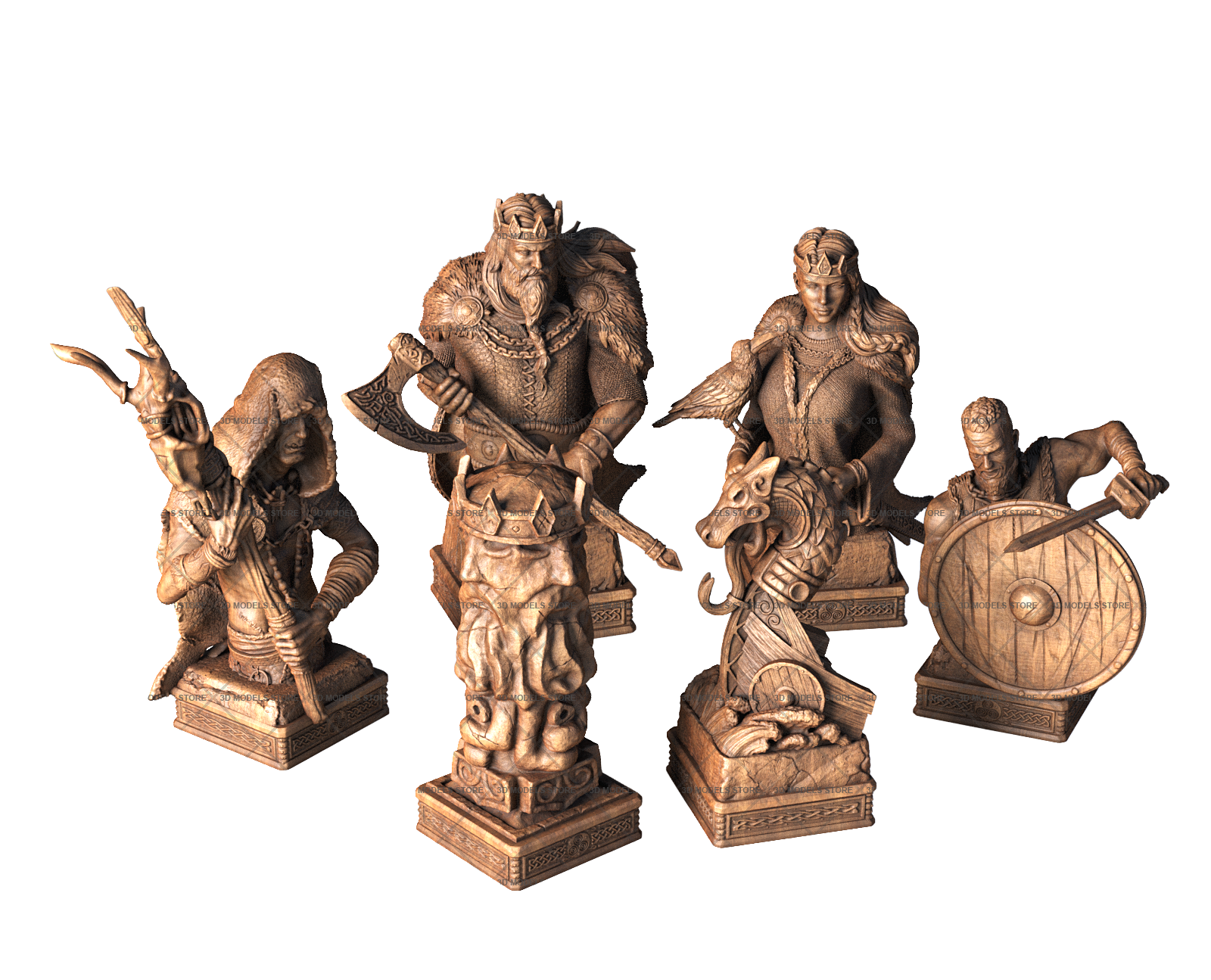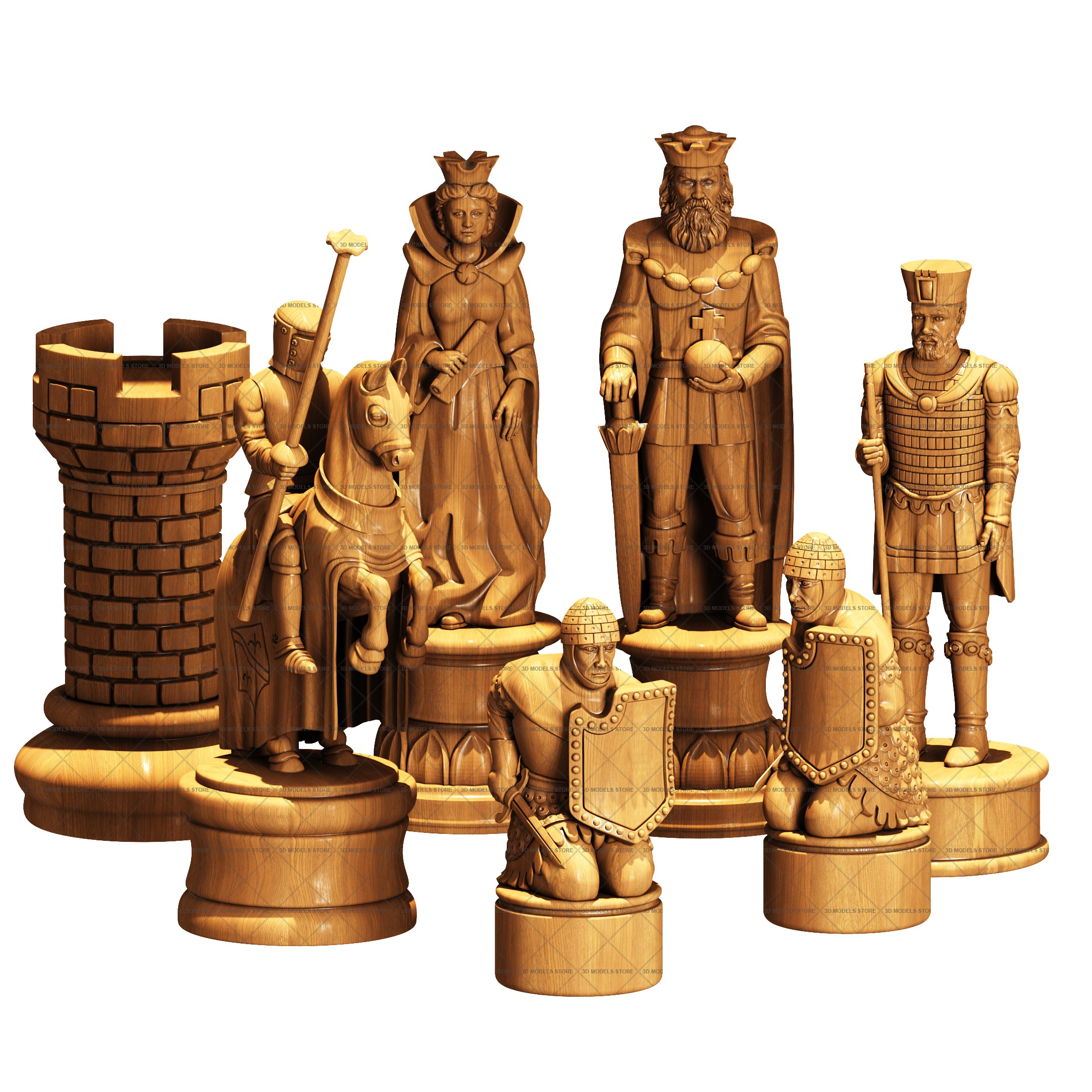 We offer you carved chess 3D (STL) models in different styles from classic to medieval knights, kings, warriors pieces. Each piece is designed in meticulous detail.